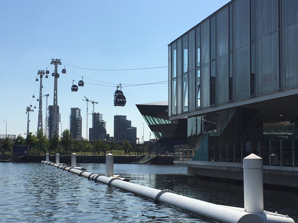 С восточной части полуострова можно пересечь Темзу по канатной дороге. Это недорого и впечатляюще – хорошая альтернатива долгой поездке в метро с пересадками.